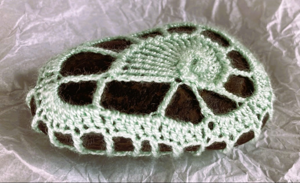 The stones choose me from their source in nature and their inner energy inspires me to embellish each one with delicate crochet patterns.